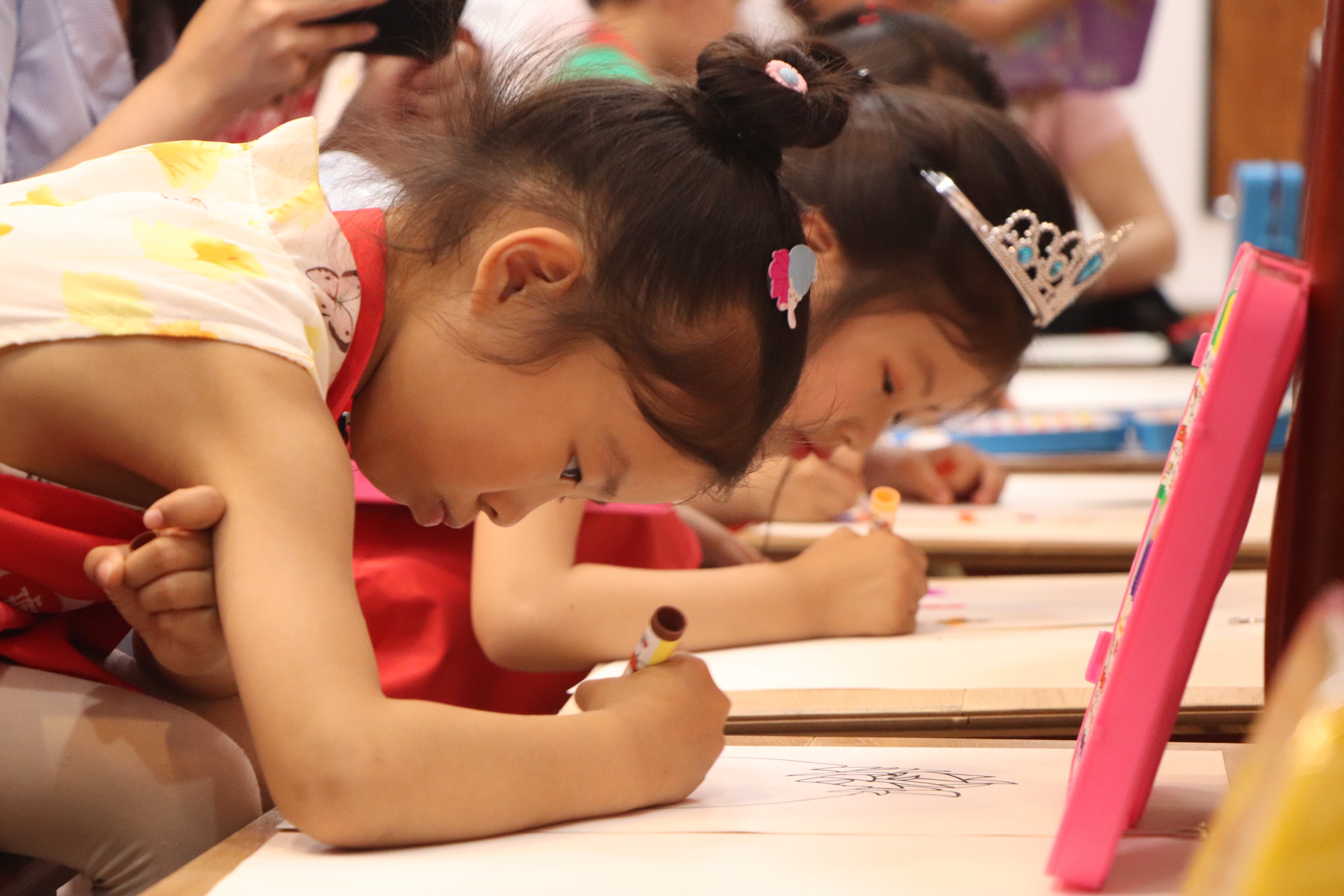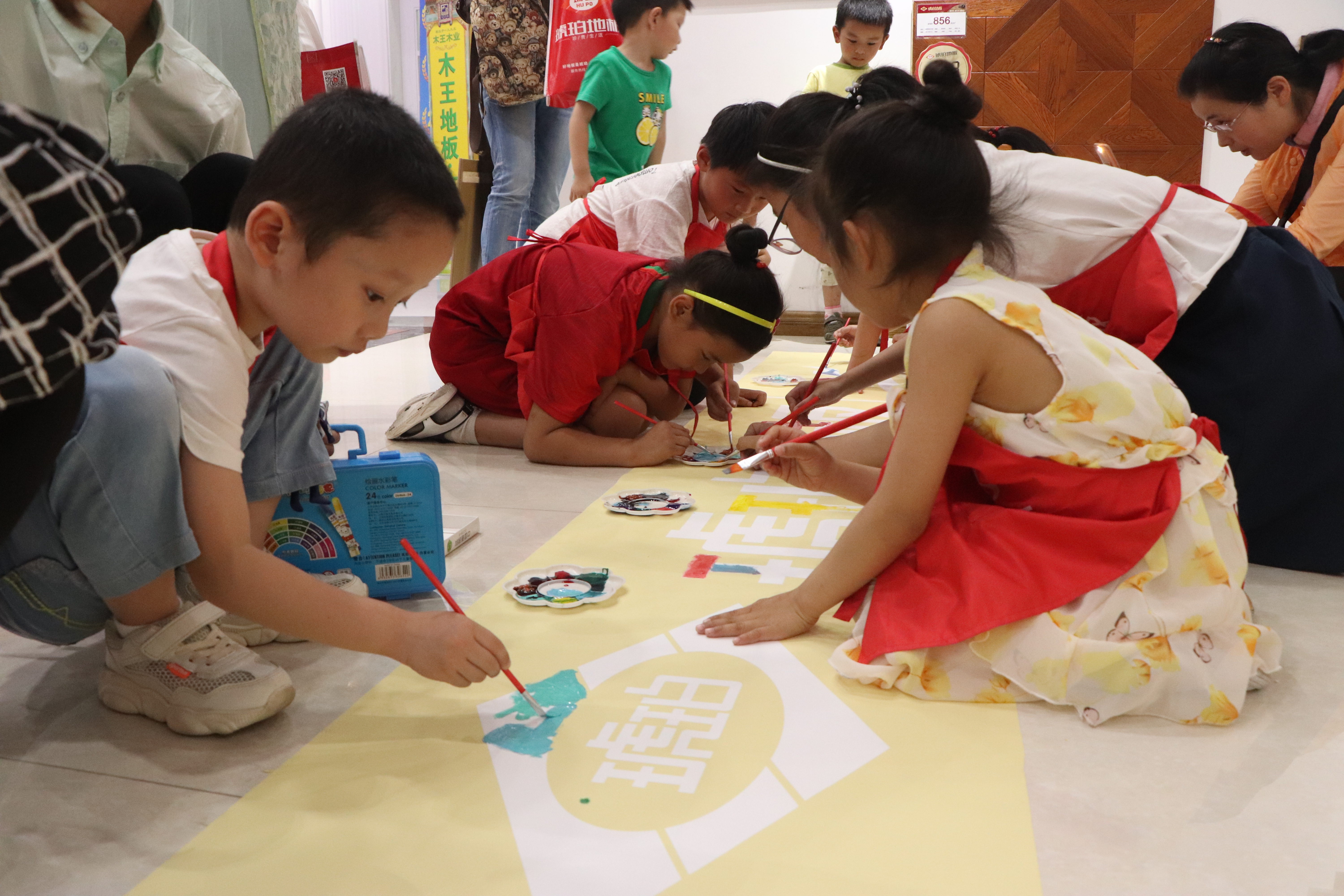 小朋友用五顏六色的顏料筆填充琥珀地板的logo?;顒?dòng)現(xiàn)場(chǎng)一張張陽(yáng)光燦爛的笑臉,一陣陣清脆爽朗的笑聲 。