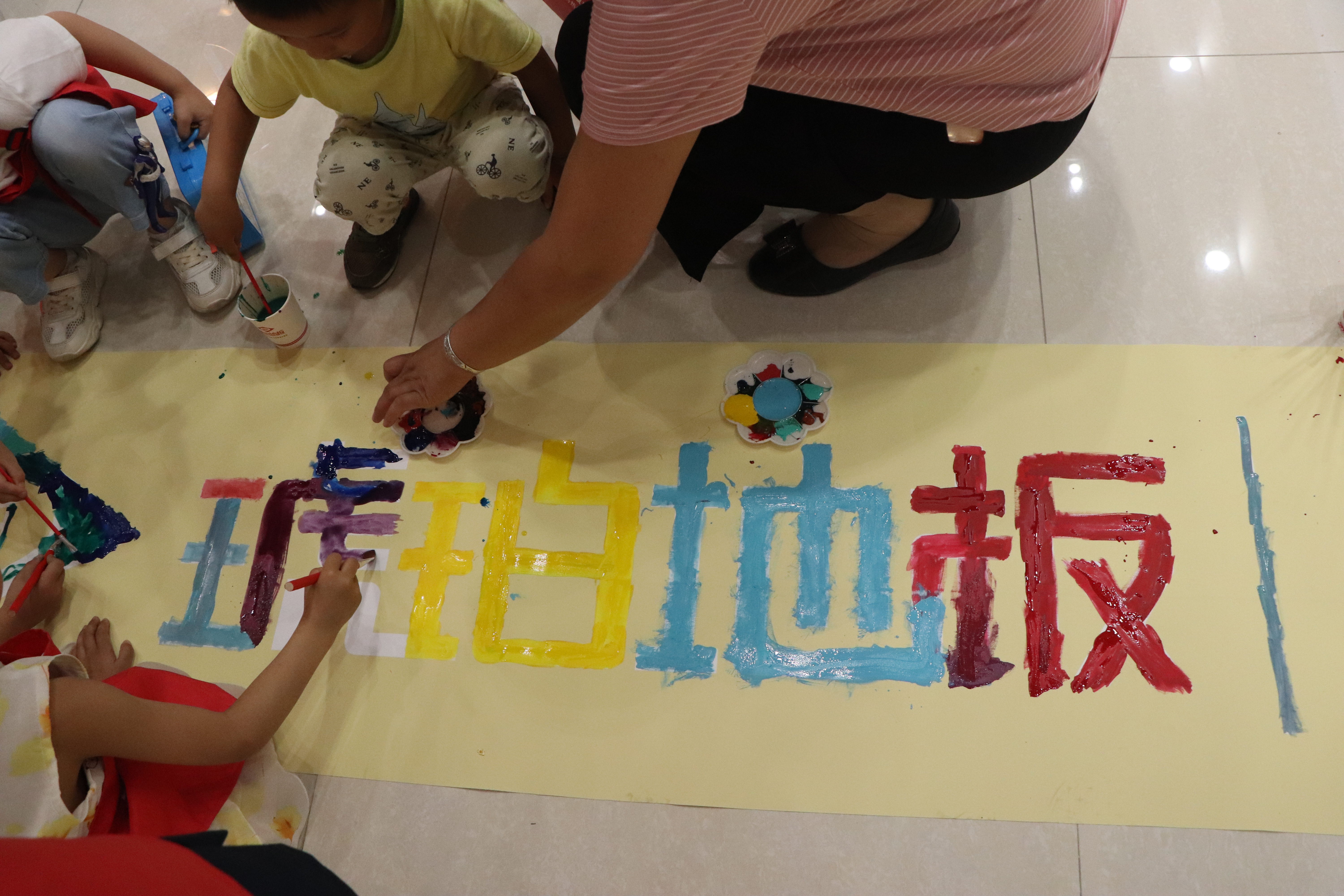 本次畫(huà)板全部由琥珀木地板定制而成,木板平滑、結(jié)實(shí),供小朋友們?cè)谏厦驿伡埨L畫(huà)。