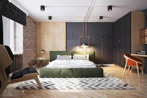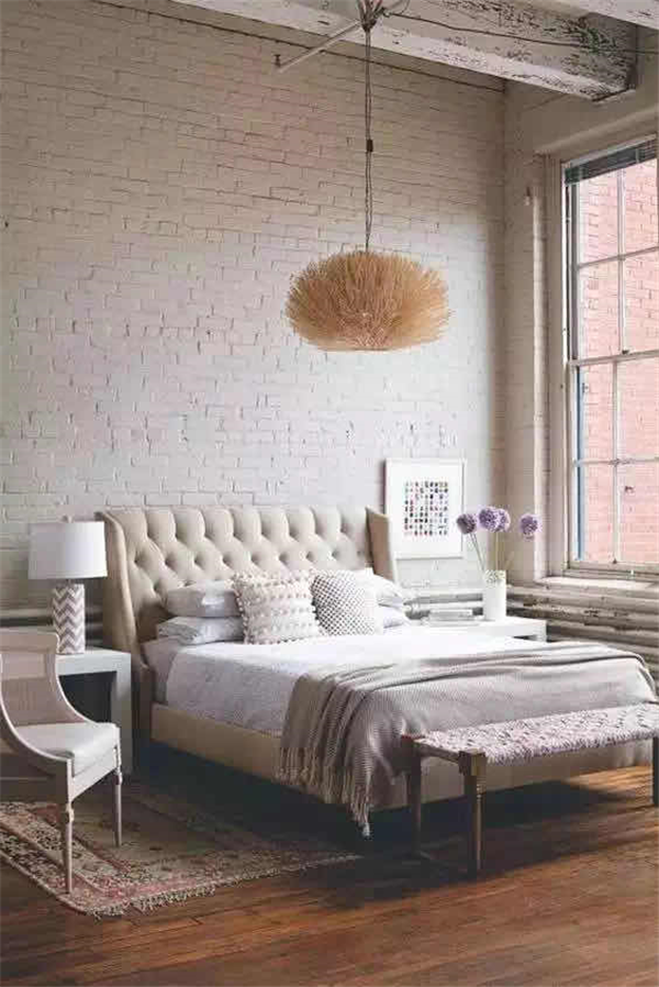臥室之中,善于使用一面磚墻作為裝飾會(huì)帶來別樣風(fēng)情。同時(shí),也不要忽視地板的選擇,應(yīng)該與整體房間色調(diào)相匹配。