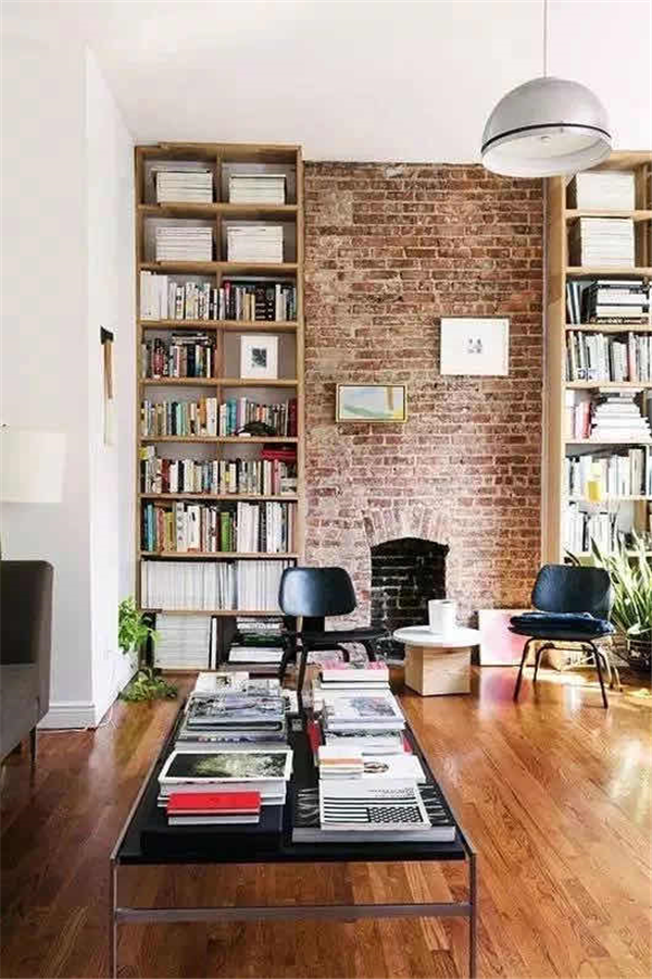 裸露的墻面帶給我們質(zhì)樸的情緒,把書房的墻面用裸磚來裝飾,沉穩(wěn)十足且具有鮮明的性格色彩。