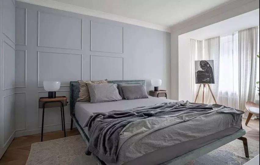 墻面的基調(diào)選用了灰色系,與整體家裝相融合,背景墻采用不對稱的線條設(shè)計,極簡又藏著獨特的設(shè)計理念。