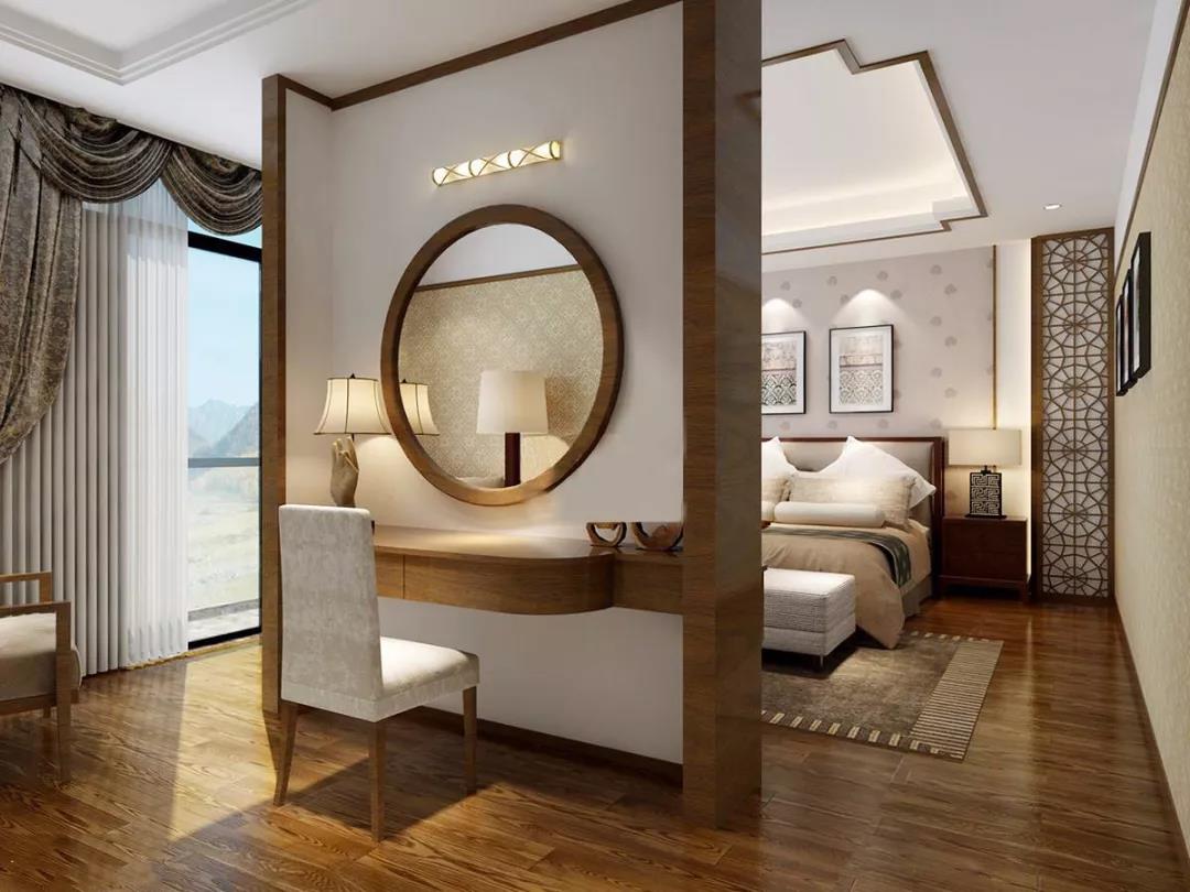 新中式極其講究空間的層次感和跳躍感,一般使用簡約化的中式家裝配以簡單造型,使整體空間更加豐富有格調。