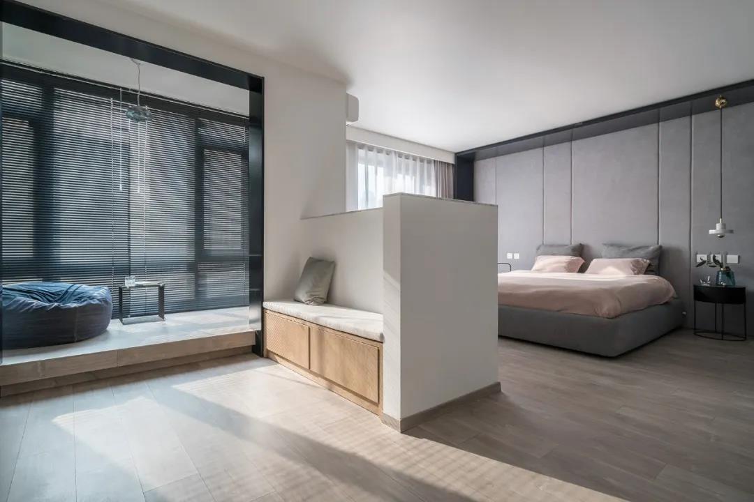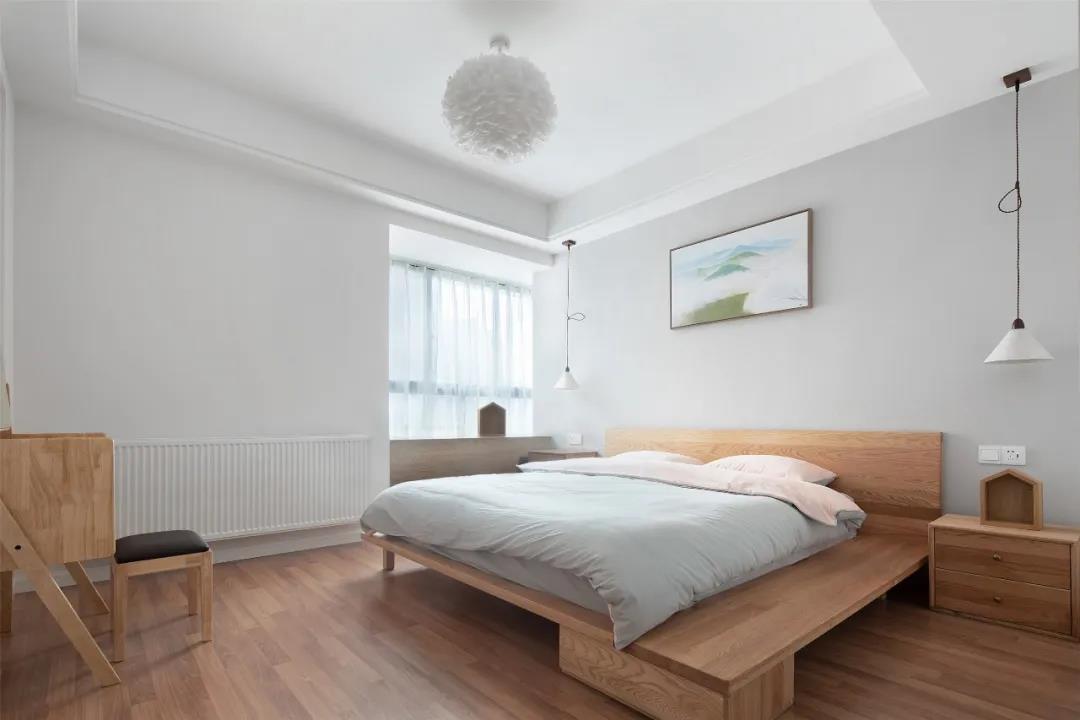 淺色調(diào)木地板與現(xiàn)代風(fēng)臥室搭配,營(yíng)造出的空間氛圍也是非常的靜謐淡雅,置身其中給人的感受就是舒適愜意。