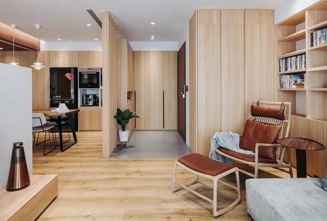 除了墻面與木地板的顏色搭配,定制柜等家具作為占用大面積墻面的存在,柜體的顏色也對(duì)空間有著至關(guān)重要的影響。