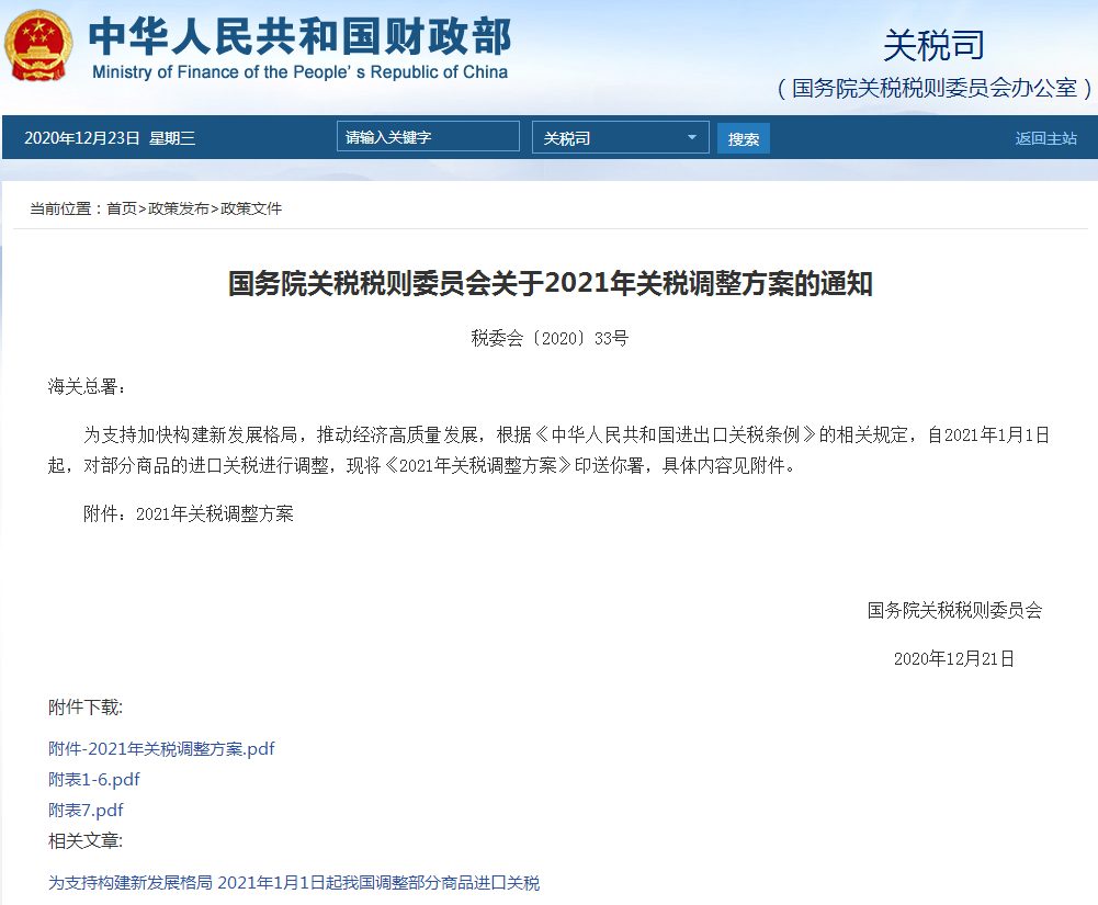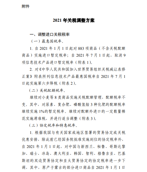 附件:2021年關(guān)稅調(diào)整方案