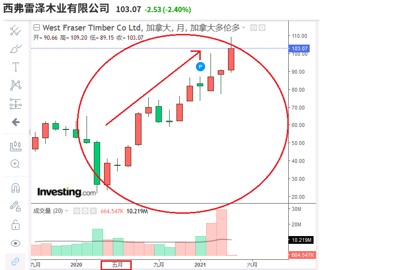 得益于美國樓市火爆導(dǎo)致木材需求飆升,木材價(jià)格大漲,并創(chuàng)下歷史紀(jì)錄。不過,與之相反的是,伐木費(fèi)其實(shí)非常低。在此情況下,木材加工企業(yè)利潤增加,股價(jià)大漲。