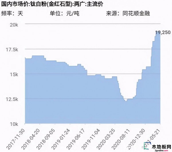從鈦白.粉的價(jià)格走勢(shì)可以看出,2020年8月前后,涂料原材料價(jià)格整體處于一個(gè)歷史低位,因此也加劇了此輪漲價(jià)潮迅速拉漲的感觀。