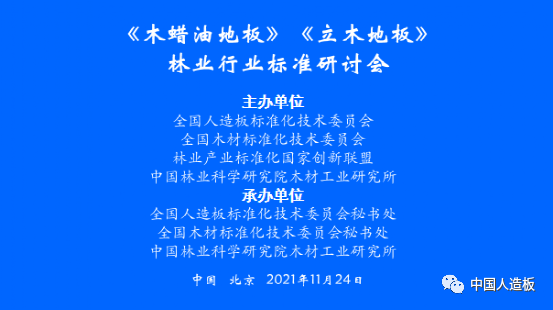 2021年11月24日下午,由全國人造板標準化技術(shù)委員會、全國木材標準化技術(shù)委員會、中國林科院木材工業(yè)研究所、林業(yè)產(chǎn)業(yè)標準化國家創(chuàng)新聯(lián)盟主辦的“《木蠟油地板》《立木地板》林業(yè)行業(yè)標準研討會”順利召開。