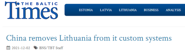 立陶宛國家廣播電視臺(LRT)等多家立媒和《波羅的海時報》2日消息稱,立陶宛出口商報告說,中國海關似乎已將立陶宛從其系統(tǒng)中移除,貨物無法在華清關。立陶宛外交部稱,正就此事與歐盟進行聯(lián)系。