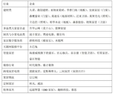 此前,我們統(tǒng)計了一個大概的清單,分成建材、數(shù)字服務(wù)商、裝修平臺、大家居、智能家居、裝修、家居電商、軟體家具等品類。