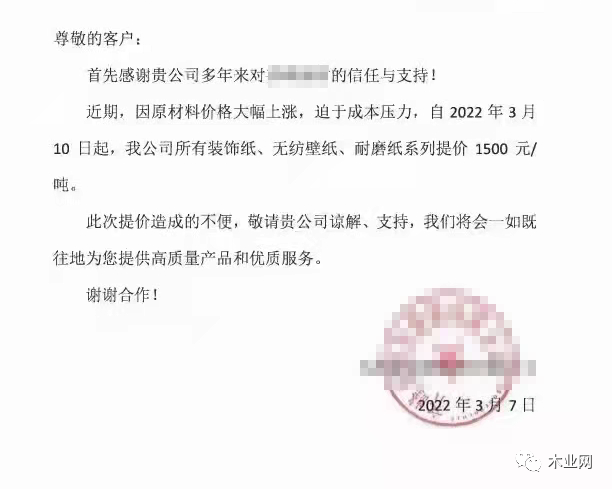 受國際原油、天然氣大漲等因素的影響,化工原料紛紛漲價,疊加反復的疫情,無疑推動了化工品的漲勢?;ぴ牧铣杀窘o予裝飾紙、板材成本端強力支撐,很多企業(yè)的生產(chǎn)成本大幅增加。