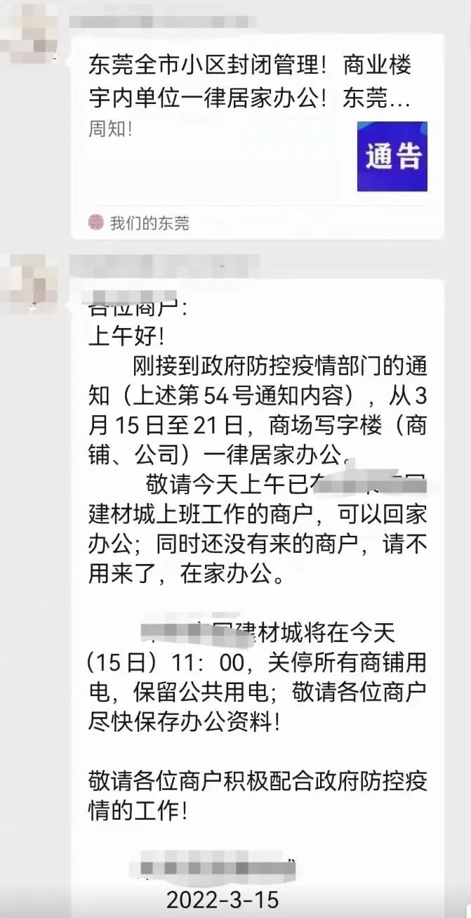 此外廣東東莞、深圳等地同樣施行封控,當(dāng)?shù)氐慕ú某潜灰箨P(guān)閉,關(guān)停了所有商鋪用戶用電,僅保留公共用電。